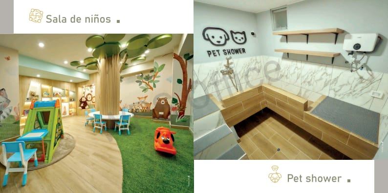 Este edificio ofrece una variedad de amenidades que satisfacen las necesidades de sus residentes. Disfruta de una refrescante piscina, una sala de juegos para los más pequeños, un gimnasio completamente equipado y áreas recreativas donde compartir momentos inolvidables con amigos y familiares. La zona de parrilla y el salón de fiestas son perfectos para celebrar ocasiones especiales. Para quienes tienen mascotas, se ha dispuesto un área de Pet Shower, así como una zona bike, ideal para los amantes del ciclismo.